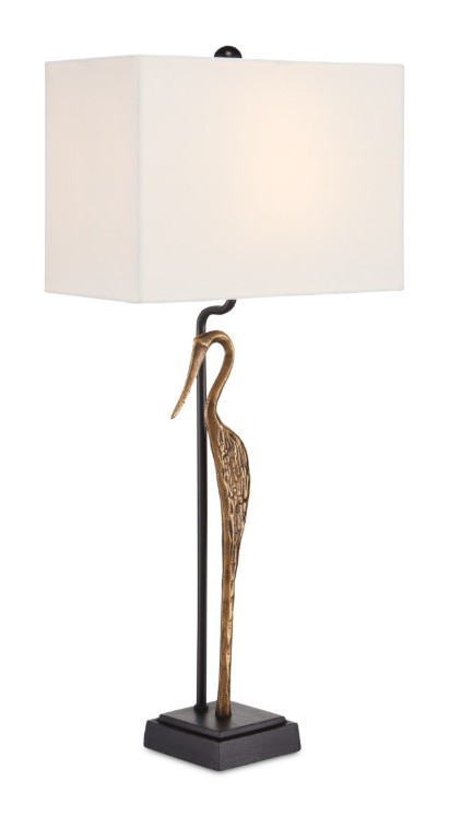 Made of cast aluminum in a mix of antique brass and black finishes, the svelte, long-billed bird is perched atop a black painted, cast aluminum base.