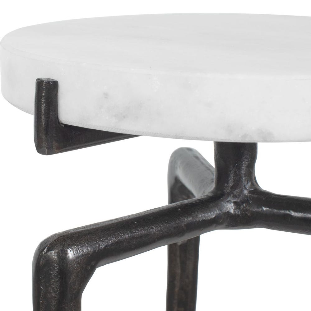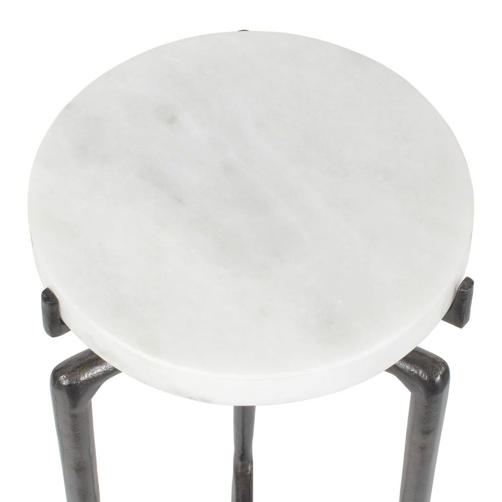 Made of cast aluminum with an antiqued bronze finish and white marble top.