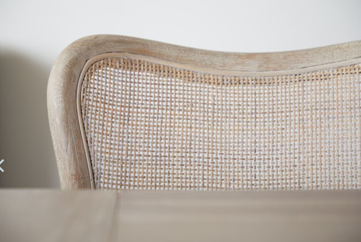 Bisque, Natural Gray Oak, Natural Gray Cane Solid Oak Wood, Cane, 55% Linen/45% Polyester Fabric, Foam insert\